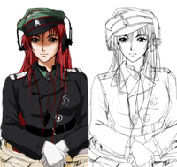 それと何年ぶりかわからないけど記憶だけで修正もせずに適当に描いたティーガーI後期型?とデフォルメな懐かしきかなセリア少尉、小さくて誰だかわからないけど...。