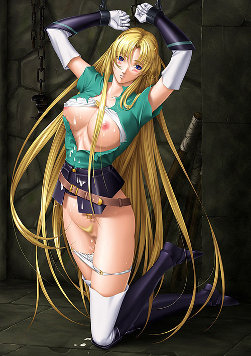 「いやぁやっぱり地下に来て正解だったぜ」 「違いねぇ珍しいのがいくらでもあるからなぁ」 二人は机に向かい合って話のかみ合っていない会話を笑いながら続けていた。 その彼らの席の少し離れた所で未だ手枷をはめられ行為の後もそのままの状態でシャロンは吊られぐったりとしていた。あの後数回行為を繰り返した為か目を泳がせ、口をだらしなく開き、意識が飛んでいるかのようなとろーんとした表情を浮かべていた。 そんなシャロンを気にする様子も無く二人が会話をしていた所いきなり部屋の扉が軋んだ音を立ててゆっくりと開いた。 「誰だ?ってアルゴ鍵かけてなかったのかよっ!」 「知るかよ、お前がかけたんじゃなかったのか?」 二人がつまらない言い合いをしている間に扉が開くとそこから剣士風の髭面の男が入って来た。その人物を見るやいなや二人は大きな溜息をついた。 「お、お前かよポルックス、びっくりさせんじゃねぇよ」 「ああ、すまない楽しそうな声が聞こえたんで・・・・」 ポルックスと呼ばれた髭面の男はフと視界に鎖につながれ肌が露になった女性を見つけた。 「彼女は?」 「あいつは俺の女、お前も知ってんじゃねぇの影の一族の女剣士のシャロン。くれって言ってもやらねぇからな」 「シャロン?」 「ポルッ・・クス?」 かなり以前、とある出来事があった時に聞いた事がある名前が聞こえシャロンはぼやけていた意識を取り戻すと視線を扉に向けた。そこには髭面の見た事の無い男が立ってシャロンに向かって視線を投げかけていた。それに気づきシャロンは急いで肌が露になった自らの体を見られないようにクルリと背を向けた。 「シャ・・・・ロン・・・うぐっ!」 ポルックスは急に苦しみだすと頭を抱えその場に肩ひざを落とした。 「おい!どうしたんだよ」 「大丈夫か?」 驚き近寄る二人をポルックスは手に持っていた剣の柄の部分でいきなり打ち込んだ。まるで狙った様に二人のみぞおちに入り重なる様に二人がばたりと倒れた。 横目で見ていたシャロンは目の前で起こった事が良くわからず、ただ目の前の男が頭に手をやりながらこちらに近づいてくるのを見て恐怖を感じたがすぐ手前まで来た時シャロンは男に問いかけた。 「私を・・・どうするつもり・・」 するといきなり男は剣をスラリと鞘から抜き構え、それに驚いてシャロンは目を瞑った。キーンと言う甲高い金属音と共に鎖がだらりと垂れ落ちた。シャロンはわけも分から無い出来事に目を大きく見開いて体を男に向け喋りかけた。 「あなた・・・光の一族なのにどうして・・・」 「分からない・・・・ただ君を助けなければいけないように感じた・・・・・あっすまない」 そう言うと男は慌てた様にシャロンへ背中を向けた。 シャロンはフと自分が男に対して肌をさらけ出している事に気づくと、恥ずかしそうに胸元と大事な部分を隠すと自らのマントとスカートを身に着け肌が露になった胸をマントで覆い隠した。そして先程の行為の後始末をしなが倒れた二人の体を探ると鍵を探し出し、手枷を外すと壁に立て掛けられた自らの剣を掴み、倒れた二人のそばで引き抜いた。 「すまない、彼らは俺の友人なんだ。命だけはとらないでほしい」 男の言葉にシャロンは少し考えると剣を鞘に戻しそのまま扉へと向かってたどたどしい足取りで歩くと手前で立ち止まり男に振り向いてつぶやいた。 「あなた・・・もしかしてアスト・・・・いえ何でもないわ」 「?」 「ありがとう・・・・」 そう言い残してシャロンは部屋を後にした....。 |