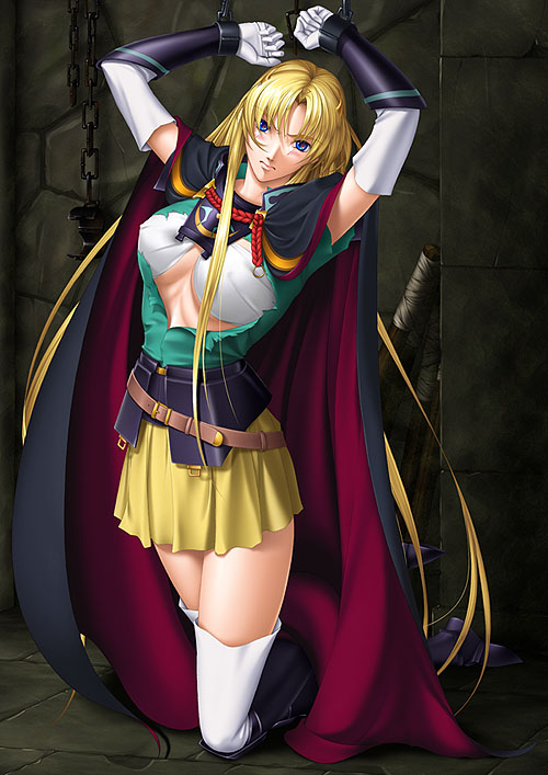 ビリビリビリィーーーーーッ 「!!ちょっ・・・いやあああっ」 その音にシャロンはハッと気を取り戻すと自分の服を破られ胸元が開いているのに気づき大声を上げると胸元を隠そうとしたのか体をくねくねと動かした。しかし手枷をはめられ自由に動かない体を嘲笑うかの様に破られた服装の合間から白いブラに包まれた豊満な胸が魅力的に揺れ動いた。 「お!なかなか女らしい体してんじゃねぇか、女剣士ってぐらいだからもっとこうがたいの良いのを想像してたんだがこれはこれは・・・」 そう言いながらリゲルは揺れるシャロンの胸をニヤ付いた顔で眺め続ける。 「わ・・・私は影の一族の剣士!・・・・」 フと動揺していたのに気づき、すぐに冷静さを取り戻そうと目の前で自らの胸元を眺めるリゲルに向かって眉をキリッと結ぶと力強く言い放った。 「でもそれ以前に女だろ」 「っ・・・・・」 返された言葉に顔を俯いた。 「へへっそういう強がる所がまたそそられるぜ」 しめたという顔をしながらリゲルはシャロンの左右の胸に手を伸ばすとブラの上からシャロンの胸をまさぐった。 「い、イヤ!そんな汚らわしい手で私に触らないでッ!」 「ホントはもっと触ってほしいんだろう」 「誰がっ!好きでも無いやつなんかに!」 シャロンの怒声にも全く気にせずリゲルはシャロンの胸を下着越しに楽しむ。手の平に胸を包むと程よい力で揉みあげる、それに対しシャロンの胸はお返しとばかりに揉みあげる指それぞれに下着越しではあるものの柔らかさと弾力を与えた。そして揉みしだきながら右側のブラをスルッとずらし上げた。 |