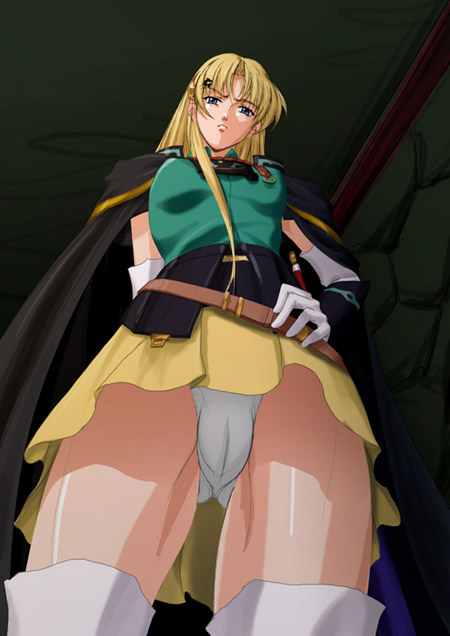 「どこを見てるのかしら?」 その一言でフと我に帰る....顔を見上げていたつもりがいつの間にか呼吸をする度に上下するふくよかな双丘の更に下..普段見られないスカートの内、太ももの谷間に覗く女性らしいなだらかな盛り上がりを描く純白の下着に思わずも目が行ってしまっていたらしい...。 視線を戻していくとそこには腰に手を当て眉を顰めまるで憐れみを請う虜囚を見るかのようなさげすんだ瞳でこちらを見下ろすシャロンの姿があった....。 何と無く塗ってみたシャロン君後期型(いわゆる光の一族編) 適当にこれと言って考えも無く描いてたら数時間後こういうのが出来てたらしい。(笑) こういう構図やパースを意図してたわけでもないらしいです、まあいつもそんなのですが。(汗") それにしてもきわどいアングルですねぇパースもなかなかにゴツイデスそういえばOVA1巻に良く似た感じの構図がありますがあれよりも直接的でエロいかも。 でそんなこんなで紙に描いてたら普段全身画が多く滅多にパースをつけないので感覚が分からないと言う事で適当なラフのままスキャナで取り込んでポテチ食べながら色をつけてたらしいです。 がそこで無駄な事が好きな性格が災いを呼んだらしい.....ついでだからブラも描くかとPC上で後2ミリのペン先のペンで描き描き......ん〜このままでも虚しいので服装も描くかとまた適当にかきかき....。 そのまま終わるかと思ったら単色塗装は虚しいかな〜ということで影をカキカキ...。 でこんな物かな〜と思ってたら背景が白もなんだかな〜と言うことで....以下略。 これで良いかなと感じたのだがやっぱり処理...以下ずっと略。 でこんなのになったわけで....無駄は無駄を呼ぶと....なかなか良い格言かも 。(汗") なぜかそんなのをアップしてる今日この頃。 シャロン君のどうでもいい事らしい集 シャロン君自体に興味なければあまり読む必要も無いかもしれないらしい。 最初前期型を描くつもりだったのだが胸がプレートメイル(胸当て)に入らなかった為仕方なく後期型になったらしい。 あまりにも適当に描きすぎて剣の柄と鞘の位置がずれまくってるらしい。 ちなみにこの剣のディテールはOVA版が基本らしいのだが実は後期型の剣のディテールを知らずなんと塗り終わってから今頃初めて知ったらしい.......。 ベルトの通しの部分がゲームのCGでは金属と皮の2種類があり未だにどちらが正しいのかは分からないのだが金属なのは1枚だけであり恐らく塗り間違いだろうと思ふ、なので一応皮にしてあるのをこれを読む前に理解した人はかなりのシャロンマニアだと思ふらしい。(笑) ベルトの穴を一箇所書き忘れてるらしい。 マントの裏地は表地よりも少し濃い物ですけどゲームのCGでは黒と赤の2種類があり黒は一枚しかなく脱衣雀3では赤になっているで恐らく赤が正しいのだと思うのだが黒の方が合ってたので適当に黒にしたらしい。 はてショーツに筋が1本通ってますけどバランス用のただの中心線ですあの筋じゃあないです....でも塗りが入ってますね...しかし嘘じゃないらしい。(汗") あ!ショーツの繋ぎの部分描き忘れた....らしい。 ショルダーアーマーの位置が変だなとちょこっと思ってるらしい。 下手にトレースして更に修正を入れた絵を真面目に描くよりもラフを修正して真面目に塗った方が綺麗なんじゃないかと思ったらしい。 なぜか解像度400といつもと同じサイズで作業したので無駄に大きい画像らしい。 後期型のCGは1枚もHPには無いのだがCG集用としては数枚描いた事があるらしい。 趣味は剣術と強い男と過ごす事になってますが強い男と過ごす事って後期ではカイザーにはそれほど興味は無いわけで..それ以前に趣味じゃねえじゃんと何と無く思ふらしい。 個人的にはシャロン君の趣味は髪留め(髪飾り)を集める事じゃないかと思ふ、と言うのもゲームのCGでは髪留めのディテールがCG毎にかなり違っているかららしい...ただ服装のディテール自体もCGによって変わってるのでもしかしたらりんしん氏がディテールをあまり気にせず描いた可能性もあるかもしれないらしい。 脱衣雀3のシャロン君の妙に貧相な立ち絵よりもこの適当なラフの方がイケてるんじゃないかとフと思ったらしい。 このCGの髪の毛の塗りはたったの数分、いつもの塗りは数十時間....何とも頭が痛い問題らしい。 このぐらいのレベルなら10日ぐらいあればCG集作れるんじゃないかと性懲りも無く思ってしまったらしい。 後期型とOVAの服装は16禁のCGを描くにはなかなかに理想的らしい、と言うのも前期型はプレートメイルがある上その下に2枚も着込んで重武装な為脱衣系しか描けず非常に面倒なのだが後期型とOVAは肌着の上1枚でしかも前留めなのではだけさせればいいだけだかららしい。 それと影の一族編でシャロン君にカイザーが抱きついているシーンがありますけど胸に手を回しているCGでは2枚目の服のディテールが描かれていない....脱衣雀1のディテールからするに直接胸に手を触れるにはかなり