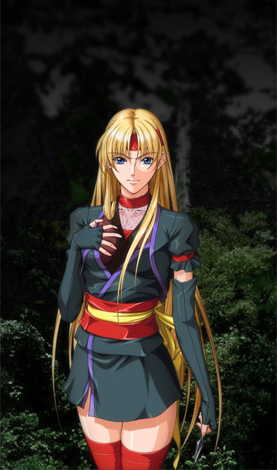 「くっ..撒けないか....」 金髪の忍者は足を止めると振り返り辺りをうかがった。 闇より出でる影は5つ、いずれもが目の部分以外をすっぽり覆った忍び装束に身を包む忍者であった。 その中の頭領と思わしき者が一歩進み出るとくぐもった声で話し掛けた。 「観念する気になったか?」 「誰が貴様ら等に!」 そう言い終わる前に女の忍者は動いていた。 左手に持つクナイを目の前の男に対して投げ放つ。 男の額に届くかという所で男の姿は闇に消える。 「なっ..」 と女の忍者は驚きの声を上げる間も無く背後より現れた気配の下ろした手刀によりその場に崩れ落ちた...。 「親方様より殺すなと言うお達しなのでな....」 そう言うと気を失った女を抱え上げると闇に消えた....。 |