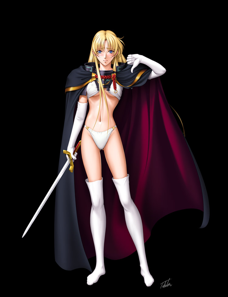 13 シャロン君マニアックシリーズ第4弾です。 下着類だけのシャロン君にマントを着せた物ですね。 まずありえない組み合わせですね、ありえるとしたら寝てる所に緊急でマントだけを着て出たみたいな...って無いよな〜と。(汗”) でもラングリッサーとかだとマントにやたらと露出の多い服のキャラが多いので混じればそんなに違和感ないかも。(笑) まぁ剣は合わないわね、魔法使いタイプかな? shcg38のページへ戻る HPトップに戻る