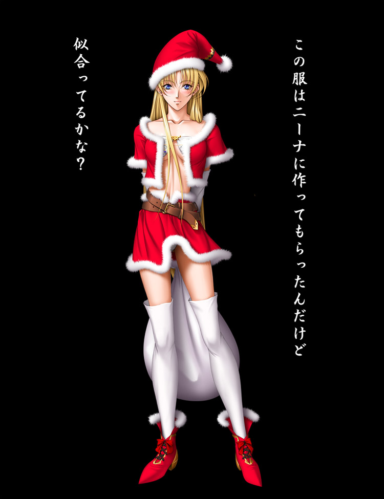 「何とか間に合ったわ!ン〜〜〜ッ」 シャロンはそう言ってずっと椅子に座って慣れない作業をしていた為硬くなった体を、思いっきり伸ばした。 「自分なりに良い出来なんじゃないかしらこのぬいぐるみ」 手前に置かれた今作り終わったばかりのぬいぐるみを手に持ってシャロンは微笑んだ。そしてその隣に置かれたよく似たぬいぐるみを傍に寄せ一緒に並べると、机の上に腕を組み頭を乗せその並んだ二つのぬいぐるみをじっと見つめた。 「アストラル喜ぶかな・・・・」 シャロンは小さくつぶやくとゆっくりと目を閉じた。するとそのすぐ後にスースーと可愛らしい寝息が聞こえ始めた。 「シャロン、帰ったよ!」 「ん?」 聞き覚えのある声とドアを叩く音でシャロンはフと目を覚ました。 「アストラル?ちょっと・・まってね・・・」 重い目を擦りながらドアの前まで駆け寄ると、急いで鍵を外しドアを開けた。するとそこには大きな籠のような外見の袋を持ったアストラルが満面の笑みを浮かべて立っていた。 「シャロンただいま!」 「アストラルお帰りなさい!」 シャロンはアストラルと確認するや否や手を広げて抱きつき、アストラルの頬に自分の頬を寄せた。 「ちょ、ちょっとシャロン!・・?そ、そのサンタの服装は?」 アストラルは玄関前で抱きつかれて少し困惑していた。その時、シャロンの服装が普段の服ではなく赤いサンタの衣装なのに気づいた。 「あ、これ?この服はニーナに作ってもらったんだけど・・・似合ってるかな?」 シャロンはアストラルからぴょこんと離れ間を取ると、クルッと体を回転させた。大胆にも短いスカートがヒラリと舞い、シャロンの太股、そして足の付け根の膨らみまでもがアストラルの目に飛び込み、更に困惑した。 「す、凄く可愛いと思う、いつものシャロンと全然違う感じ」 「そ、そう?嬉しい・・・」 アストラルの返事にシャロンはもじもじと照れくさそうにしながら顔を伏せた。その時... 「ああっ!」 シャロンは急にびっくりした表情をすると急いで奥の部屋に走って行った。 「ん?何だろ・・」 そのシャロンの行動があまりに気になったアストラルも急いで部屋に入っていった。 |
