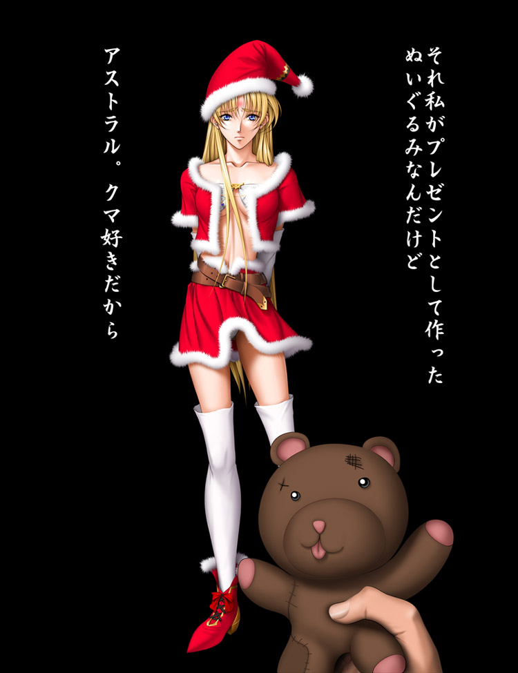 「ああっ!」 今先ほどまで目の前にいたアストラルがいない事に気づき、シャロンは大慌てで部屋に戻った。するとアストラルは大きな袋を傍に置き、先ほど作ったばかりのクマのぬいぐるみを手に持ち遊んでいた。 「あ〜〜〜っ!!!!」 「ん?この気持ち悪いぬいぐるみ何?どこかから拾ってきたの?」 「き、気持ち悪・・・い?」 シャロンはせっかく時間をかけてアストラルの為に作ったぬいぐるみが、その本人に気持ち悪いと言われ怒りがこみ上げてきた。が、その怒りをなんとか押さえ込み冷静になって話し始めた。 「それ・・・わたしがアストラルへのプレゼントとして作ったぬいぐるみなんだけど・・・アストラル、クマ好きだから」 「え!これプレゼント?シャロンの?ってこれクマ?」 「う・・うん」 「うそ〜〜ホントに?下手すぎるでしょこれ?だって・・・・・ほら・・・」 そう言うとアストラルは傍に置いてあった大きな袋からシャロンの作ったクマ?のぬいぐるみの数倍はあるかと思われるクマのぬいぐるみを取り出した。誰がどう見てもシャロンのクマのぬいぐるみとは段違いに可愛く、造りも綺麗でそれでいてクマっぽかった。 「へ?なに・・・・・これ?もしかして・・・私への・・プレゼント?」 シャロンはクマのぬいぐるみのその出来の違いに唖然としながらも、アストラルの取り出したクマのぬいぐるみが自分へのプレゼントと思いちょっぴり表情が明るくなった。が・・ 「これ?これミューに貰った手作りのクマのぬいぐるみなんだ〜」 アストラルはぬいぐるみを抱えるとその手を持ちシャロンに振った。 「は?みゅ・・ミュー?どうしてミューと・・・」 いきなり出たミューと言う名前に違和感を感じて問いかけた。 「ん?さっきまで一緒に居たんだ。一人は寂しいって言うから飲んだりゲームしたりあんな事やこんな事したり」 「あんな事や・・・こんな事?・・って、アストラルあなたまさか!!・・・」 「シャロンもさぁ・・こんなHな服着て・・したいんでしょ・・・」 「え?」 そう言った途端、アストラルは手に持っていたクマのぬいぐるみをポイっと机に投げ捨てるとシャロンの体に飛び掛った。その勢いでシャロンの被っていた三角頭巾がふわっと床に脱げ落ち小さな埃が舞った。 |