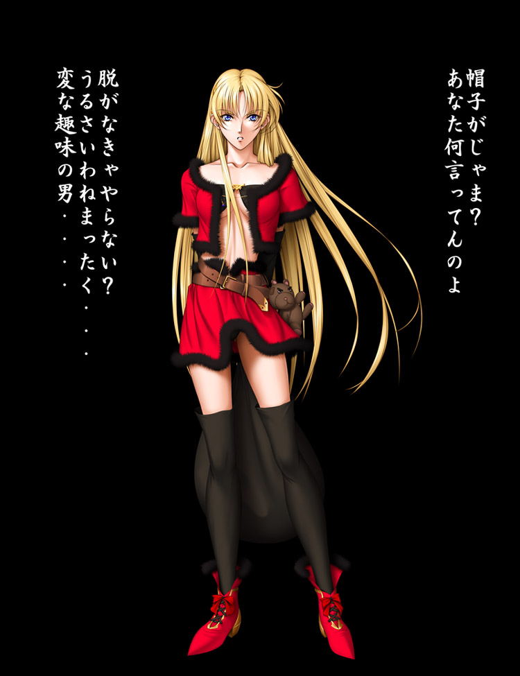 25 シャロン君マニアックシリーズ第25弾です。 ブラックサンタさん帽子無し。 個人的な趣味でやはり髪はなびいてないと駄目だという事で載せました。(汗”) ちなみにお話でも途中から帽子を外してますがあれも趣味です。(汗”) 帽子無い方がシャロン君ぽくてやっぱり良いかな〜と。 サンタさんのページへ戻る HPトップに戻る