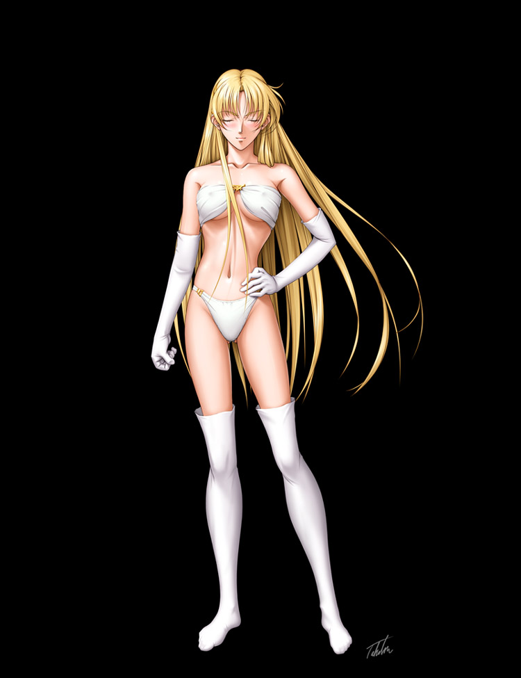 個人的に最も好きな下着類のみ(手袋とニーソ含む)状態のシャロン君です。