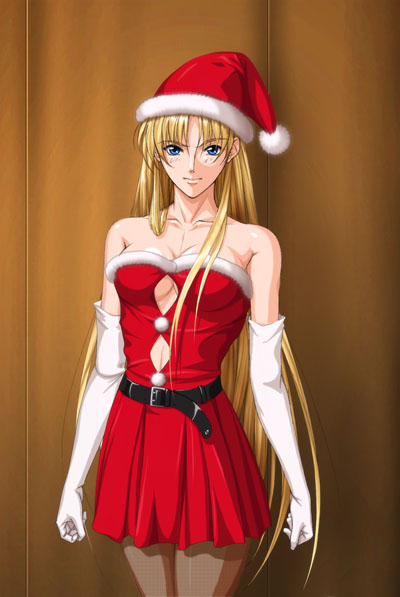 ドアを開けるとそこは自分の部屋だった...当たり前か...じゃなくてそこにはサンタの服装をしたシャロンが立っていた。 「これで満足かしら?」 なぜか手を腰にあてポーズをとり、こちらを睨みつけながらも頬がうっすら染まってるシャロンは何とも可愛らしく思える。 その着ているサンタの服装は前が大きく開いている、と言うかサイズが合っていないので開いてしまっていると言った方が正しいかも、だから胸は窮屈そうに中央に寄せられ谷間がはっきりと見える、シャロンのスタイルと相まってかサンタの服装のシャロンは普段よりも色っぽく見える。濃いストッキングを穿いているので尚更かもしれない。 .−それにしても...結構おっぱい大きいな....と。 「ああ...凄く色っぽく見える....」 「んなっ!?...もう一度勝負よっ!」 そう言うとプイッと顔を逸らし、部屋の中央に置いてある机に足早に歩を進め置いてあった果実酒を飲み干す。 −ああいう子供っぽい所も魅力なのかもしれないなと。 そして王様ゲームが再開された。ちなみに王様ゲームと言っても今はたったの二人なのでどちらかが何かをするだけである。箱は二つあり一つに王様と僕(しもべ)と書かれた紙が入れられており、もう一つに今までに皆で書いた命令用の紙が入っている、王様を引けなかった者がそれをやらされると言う事になっていた。 「さあ引くわよ.....今度こそ...」 シャロンはえいっと気合を入れながらあまり意味もなく大げさに箱から紙を取り出した。 −何やら目に炎が宿っているような感じがするのは気のせいだろうか...。 「どうだった?」 「.....僕......」 ポツリとそう言うと急にシュンとなってしまった。 −さっきのはいったい...。 「じゃあ命令の方取るから.......ほいっと」 まだ十数枚入っている箱の中から一枚紙を取り出す。 「なんて書いてあるのよ」 「.......恥ずかしそうに下着を見せろ....だって....」 「え?....ちょ...何よそれ!?ホントに?」 そう言ってシャロンに紙を奪い取られた。 「う......誰よっ、こんなの書いたの!」 「スタリオンが書きそうだな」 「....」 −ちょっと目が逝ってそうなんだけど...。 「見せれば良いんでしょっ」 不機嫌そうに言うとシャロンは後ろにあるベッドに腰掛け足を広げるとスカートを無造作に少しめくり上げた。 |